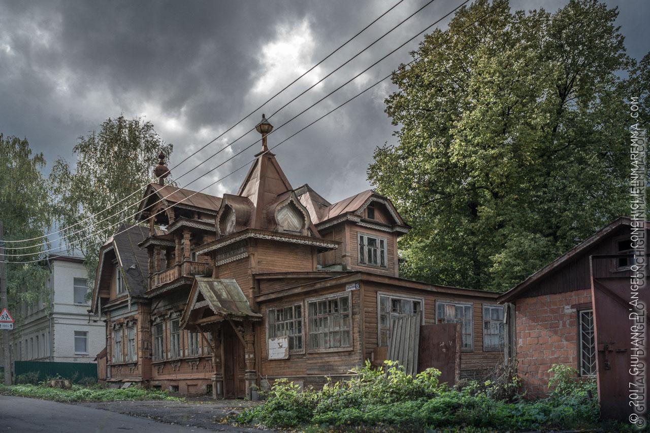 Ieri ho potuto leggere su un giornale online locale – della città dove le ho ritratte nella regione di Novgorod – che proprio una di queste è crollata. Nel tardivo tentativo di smontare una di queste case, se la sono vista franare dalle fradice fondamenta di legno. Solo 5 mesi fa ero passato da questa strada, davanti alla casa del mercante Smirnov, edificata nel 1890, e ne ero rimasto rapito. Un misto di barocco e art nouveau di fine ottocento, finimenti e decorazioni di una fantasia da fabia, frutto della vita e dei gusti di una nobiltà presovietica che oggi è ormai quasi archeologia.