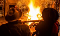 Quattro scatti nella notte delle fiaccole. Quella sera mancava l’illuminazione architettonica della rupe e il risultato è stato molto più fedele a quanto poteva somigliare in tempi antichi. Le strade inondate dalla luce arancione dei fuochi, il fumo tra i campanili che proietta le ombre verso l’alto.