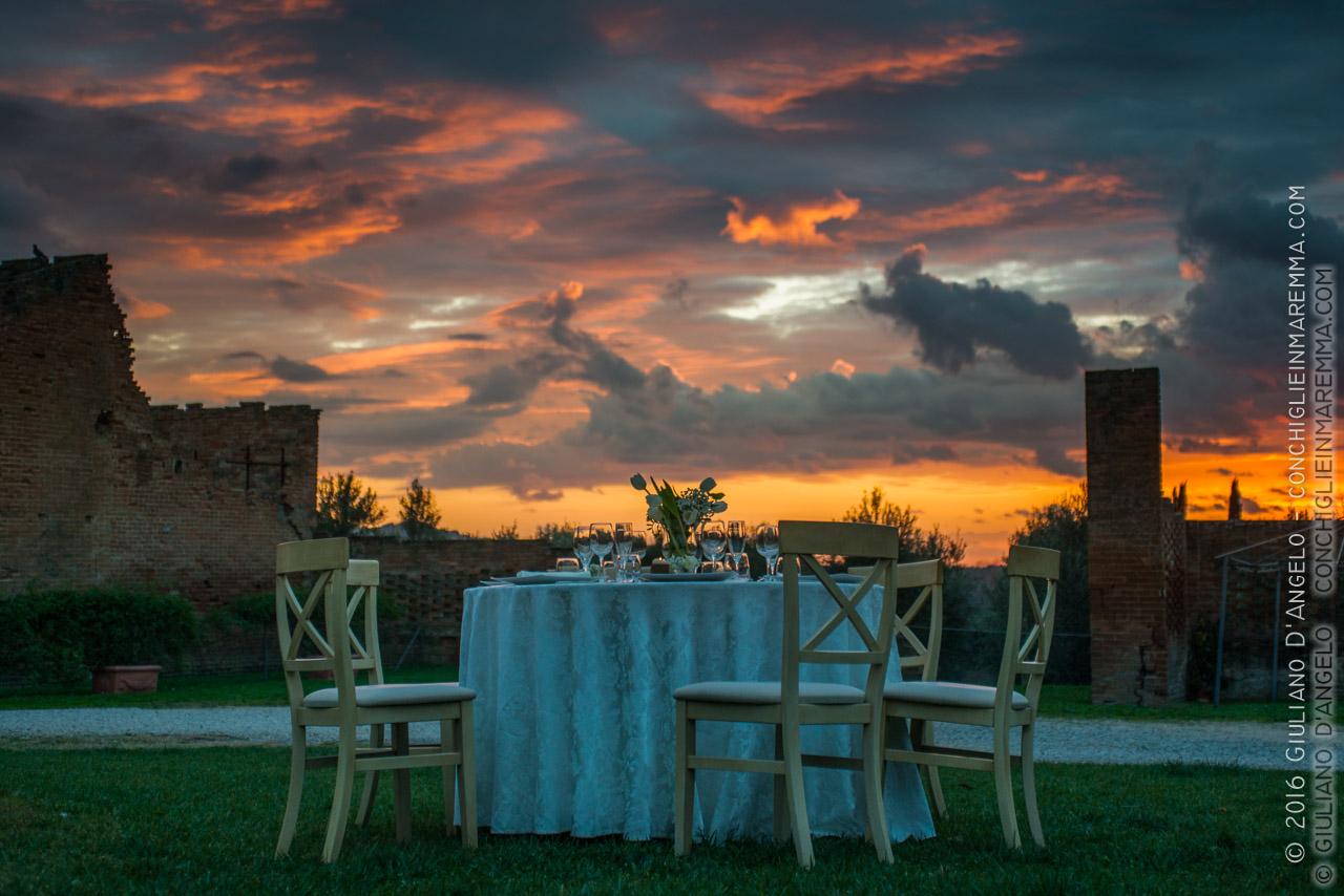 Giornata fredda e uggiosa, ma le ultime ore hanno proiettato questo fantastico tramonto davanti al tavolo imbandito.