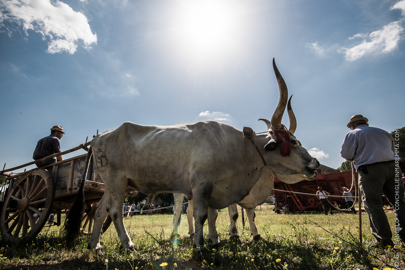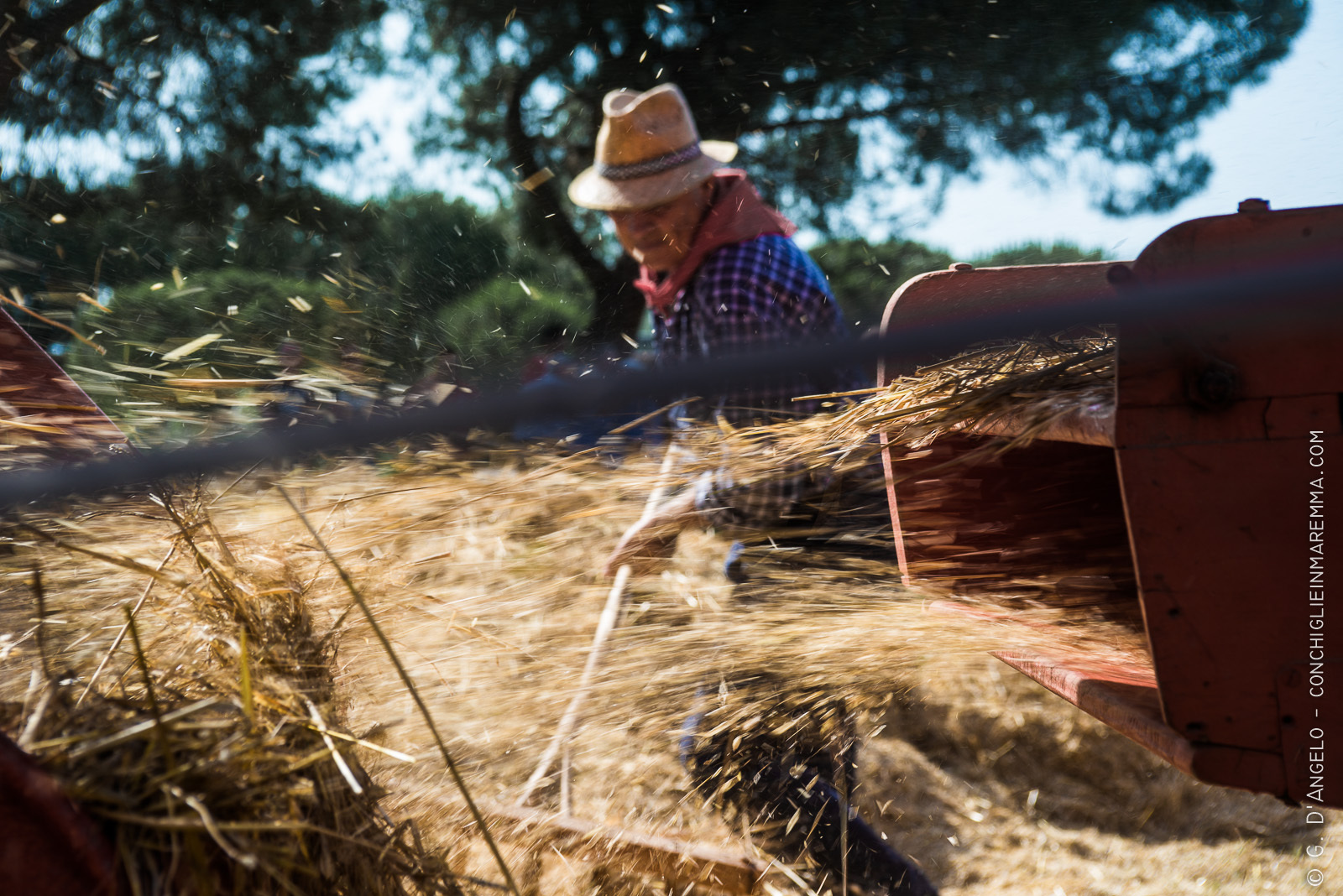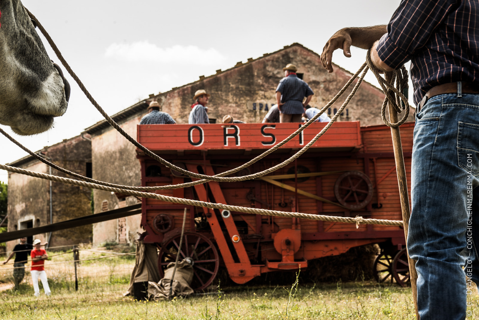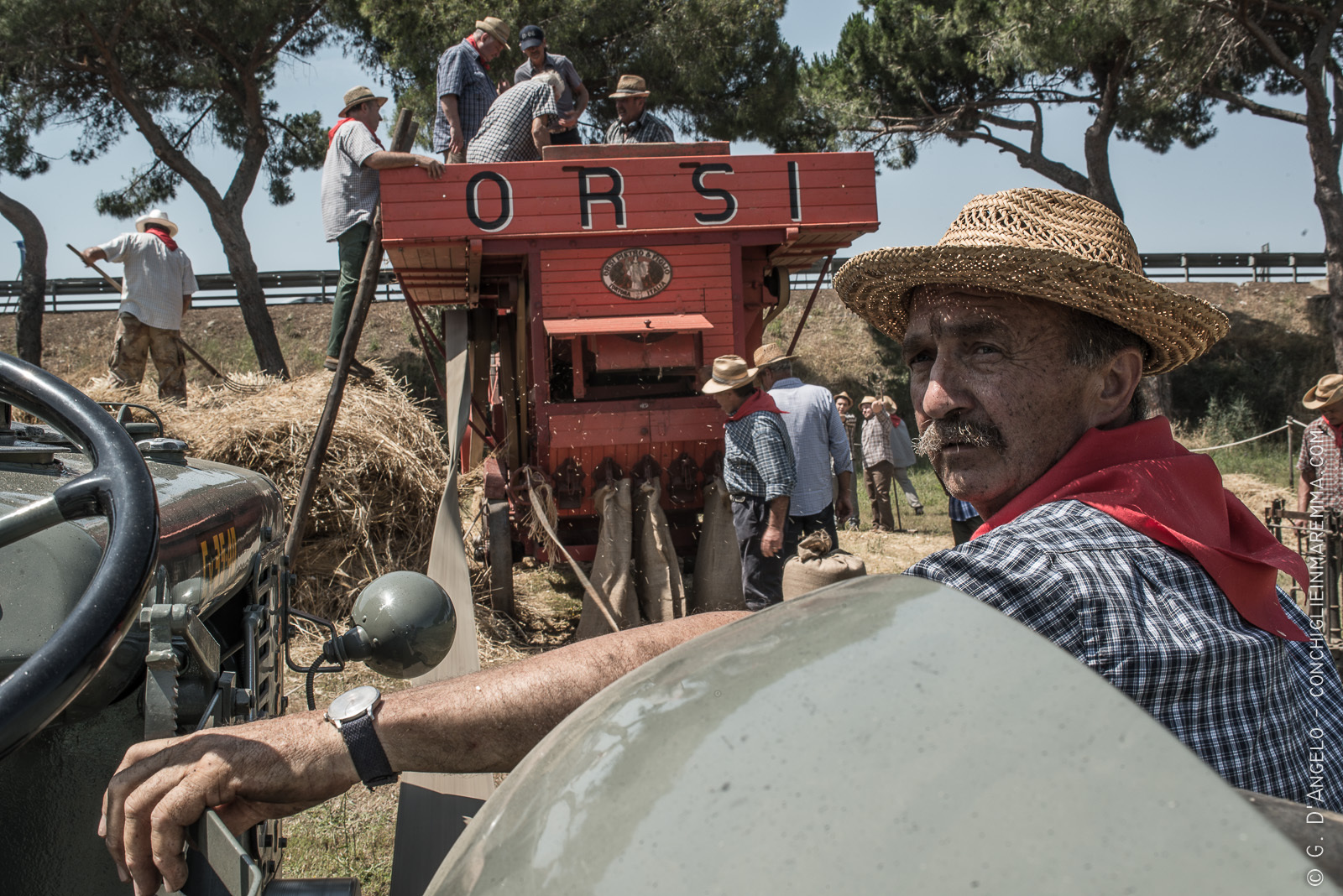 La maggior parte delle volte gli eventi più belli sono quelli meno pubblicizzati. Soprattutto per l’egoismo di un fotografo che sogna rievocazioni storiche senza pubblico per poter realizzare scatti “puri”. L’evento di ieri, cioè la mietitura e trebbiatura a Grancia dava questa fortunata possibilità . In certi orari ci ritrovava quasi esclusivamente con gente del posto impegnata nel loro lavoro. Un lavoro volontario col puro scopo di ricordare come si faceva e con la stessa motivazione di un contadino di 80 anni fa che doveva meritarsi la giornata.