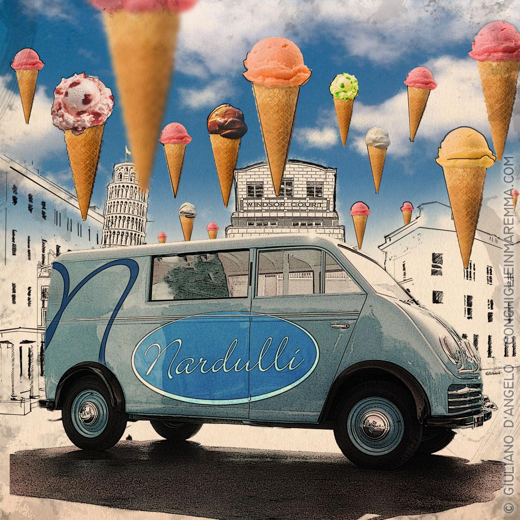 Per una gelateria di Clapham Common, Londra. Un precedente lavoro scartato in fase definitiva è diventato il fondale ideale per ospitare l’immagine di un furgone d’epoca con sergirafia del marchio. Sporcato da una texture ingiallita richiama vecchie pubblicità e visual d’epoca.