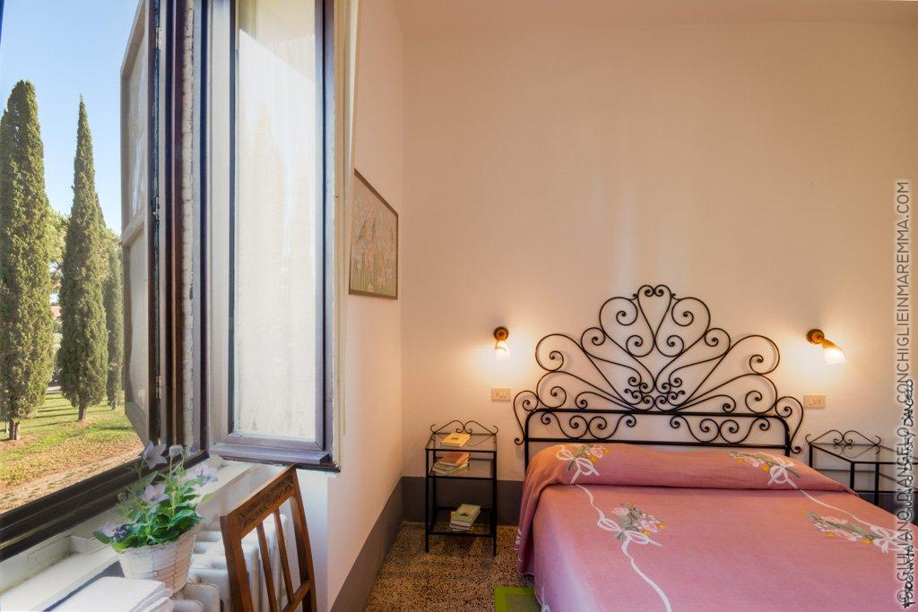 Basta un filo, una presa elettrica, un oggetto di cattivo gusto nel posto sbagliato per rovinare uno scatto. Il lavoro più grosso è spesso nella messa in scena piuttosto che nello scatto vero e proprio. Un bracketing +1/-1 o anche +2/-2 permette di bilanciare la luce interna ed esterna e mostrare il panorama. Questi ambienti sono belli internamente ma chi viene qui è per poter aprire la porta e ritrovarsi in mezzo a cipressi e a campi di grano.