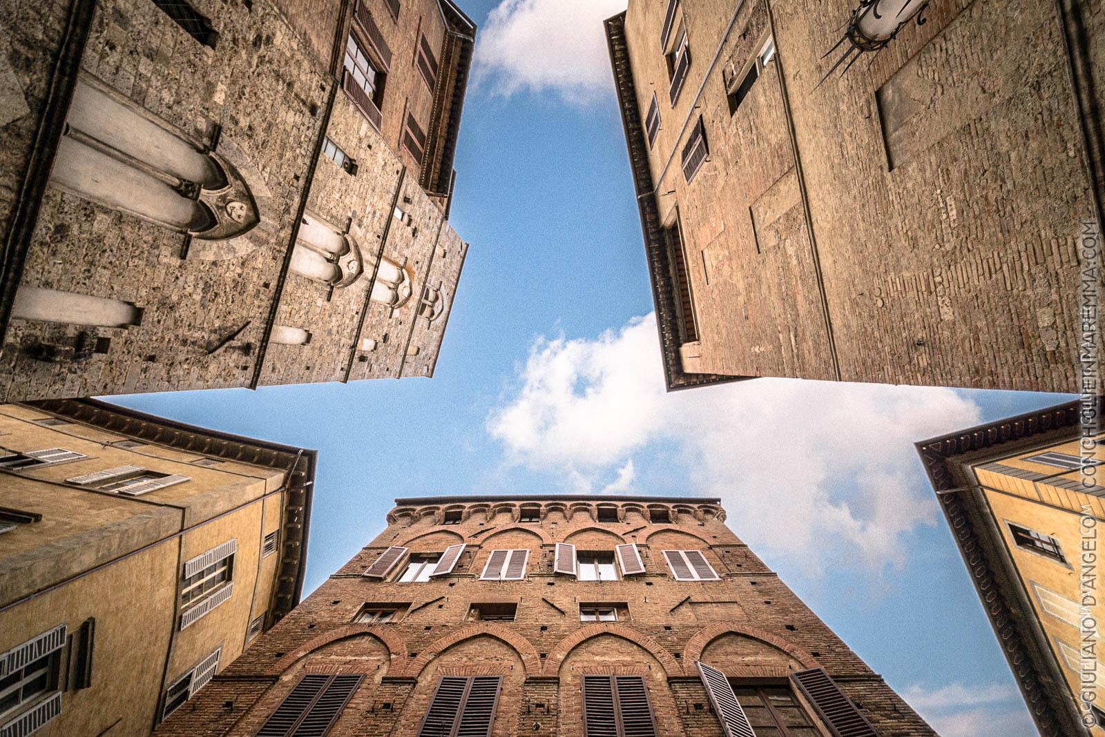 Il panorama sulla piazza del campo qui è uno dei più fotografati. Ecco perchè ho alzato la testa per cercare una prospettiva diversa: qui il cielo sembra quasi una stella.