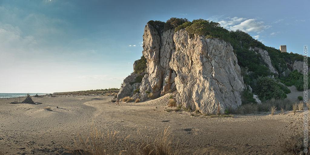 L’enorme scogliera di Colle Lungo si tuffa dalla pineta dell’Uccellina affondando nelle sabbie bianche. Non c’è una spiaggia più bella in Toscana.E questo perché non ci sono accessi diretti, l’unica possibilità di raggiungerla è farsi a piedi non meno di 4 chilometri. Una scarpinata che scoraggia il turismo degli ombrelloni e delle sgommate al mare. Una spiaggia rimasta intatta e dove il rispetto per il panorama non perdona neppure gli ombrelloni: i pochi bagnanti preferiscono trovare l’ombra tra capanne di legno e teli bianchi tesi tra i rami. Qui si respira ancora il vento che spingeva le navi saracene sotto queste scogliere e nella baia di Cala di Forno, dalle quali le torri facevano vedetta per la difesa dei domini medicei. Chi arriva qui sono appassionati di trekking, fotografi, nudisti, fricchettoni: un luogo per amanti della natura che grazie al parco dell’Uccellina resterà per sempre.